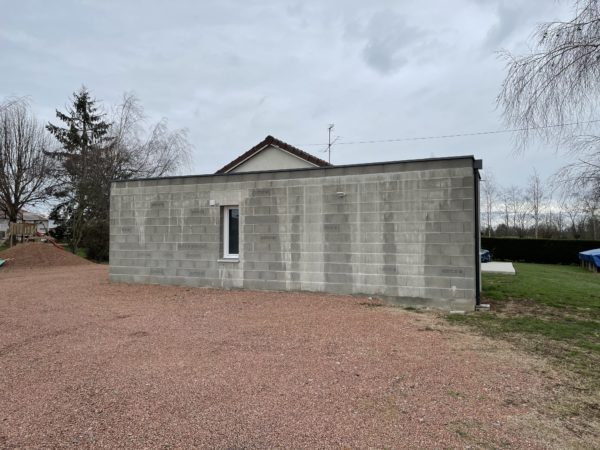 Construction d’une maison à ossature bois Construction d’une maison de plain pied à ossature bois, avec une finition en bardage bois verticale red cedar, ainsi qu’un garage avec une toiture terrasse. Lieu : Poncins Surface : 120 m² + 50m² garage
